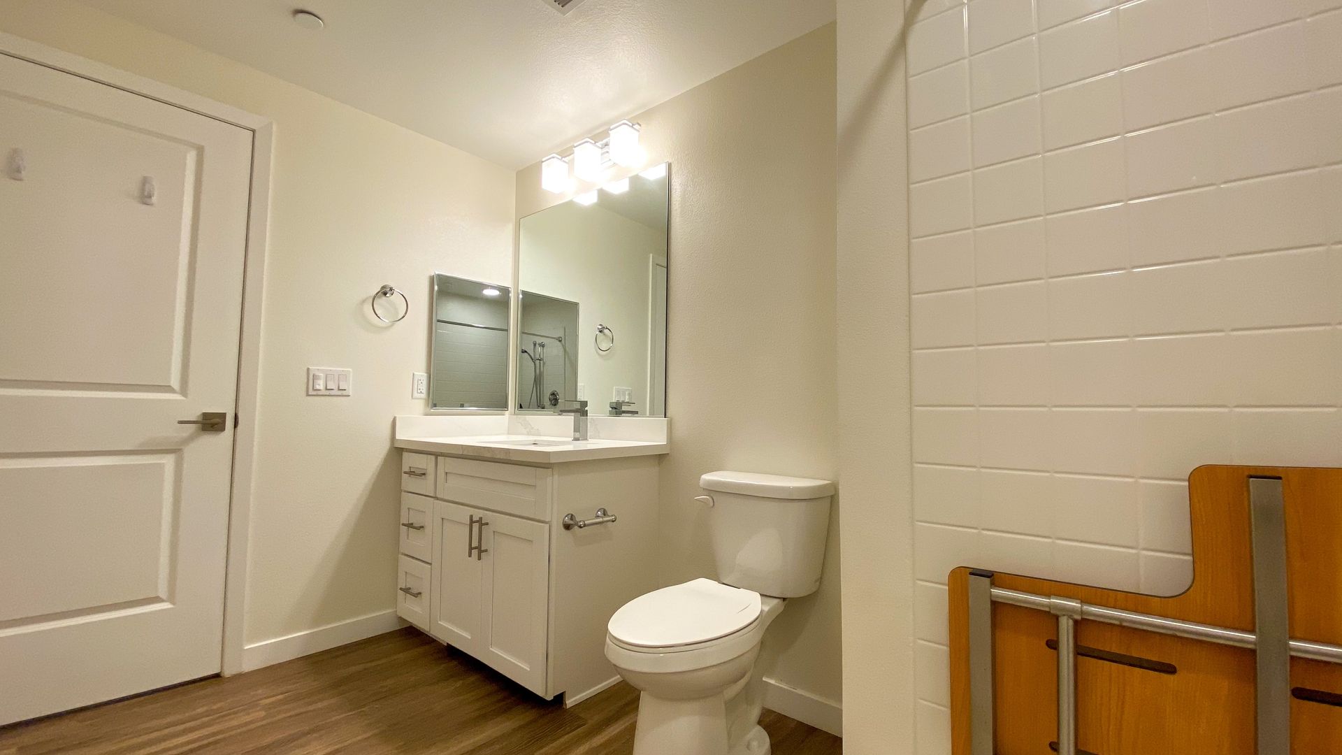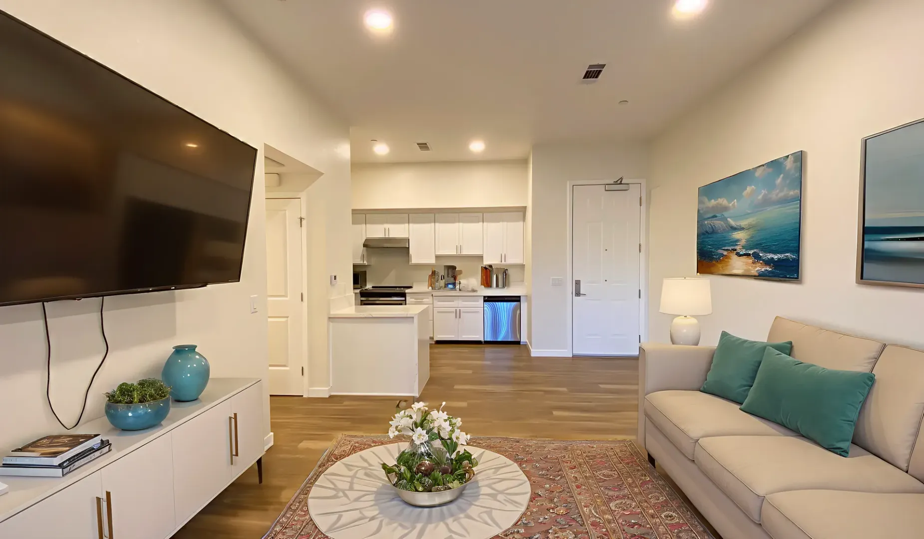 ➣Plank flooring throughout and recessed contemporary accent lighting